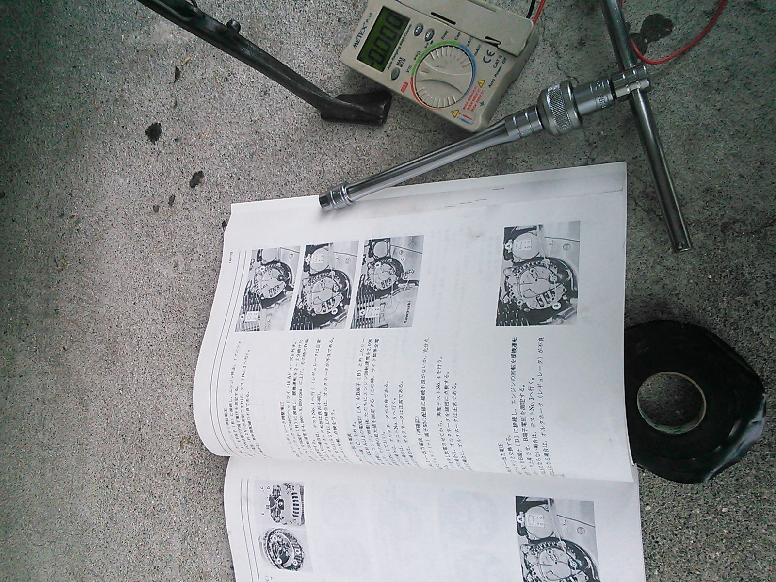 まずはゼファー1100のサービスマニュアルに従いテスターで試験し原因の切り分けを行います。