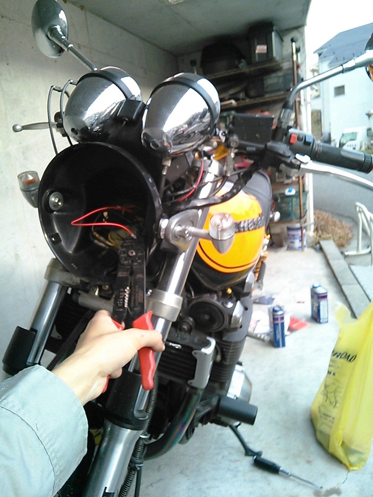 あとはヘッドライト内の配線からACC電源線を探して配線を加工しヨシムラメーターへ