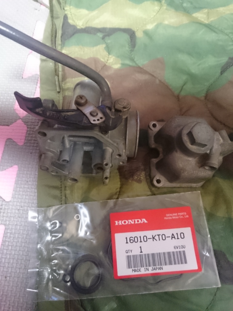 フロートバルブの交換が必要だが、ガソリンが漏れたことによってOリングやガスケット類が侵食されてダメになっているので、キャブレター一式をオーバーホールする。