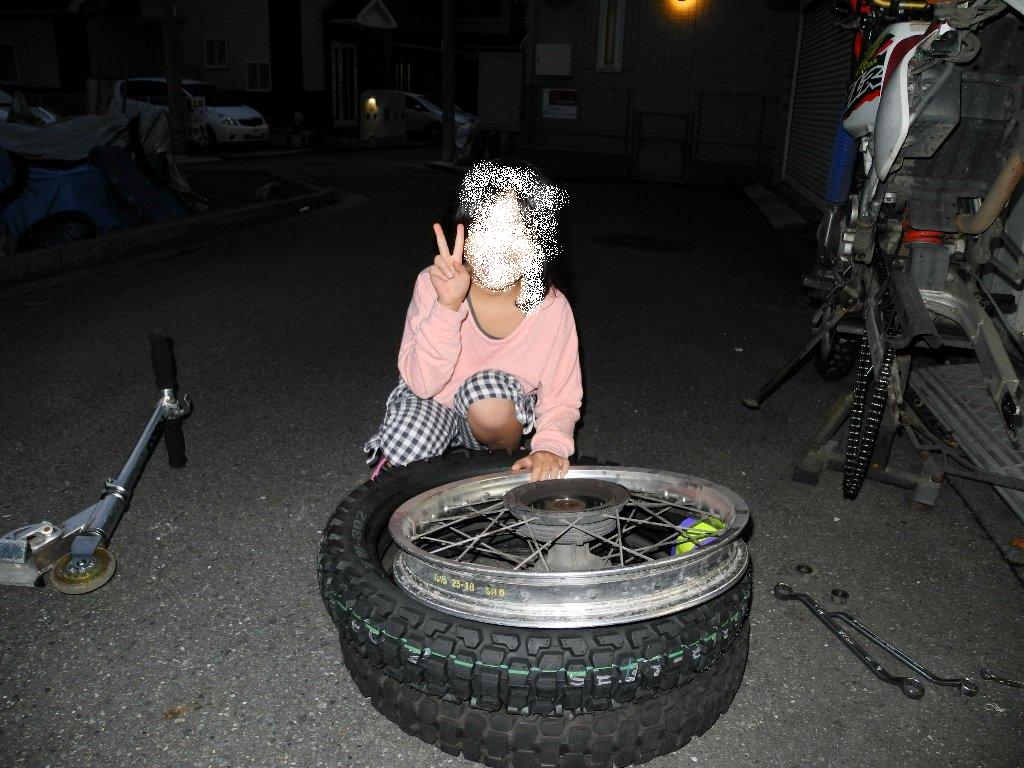 タイヤの方は、チューブを傷つけないように慎重に外して、新品タイヤに