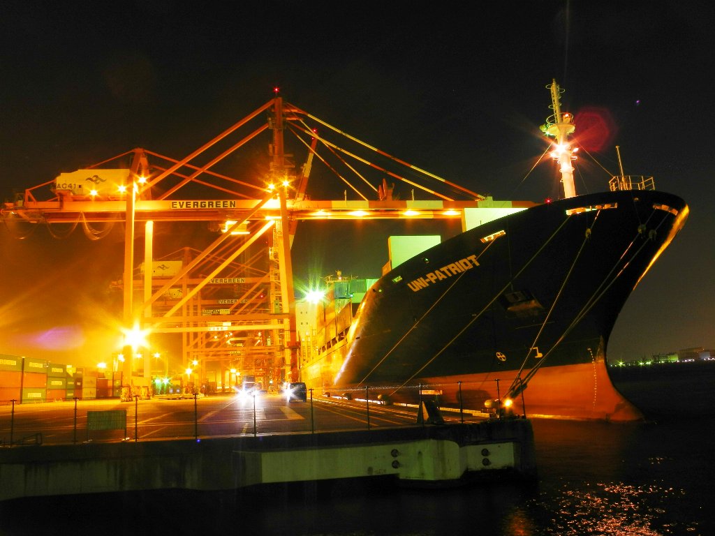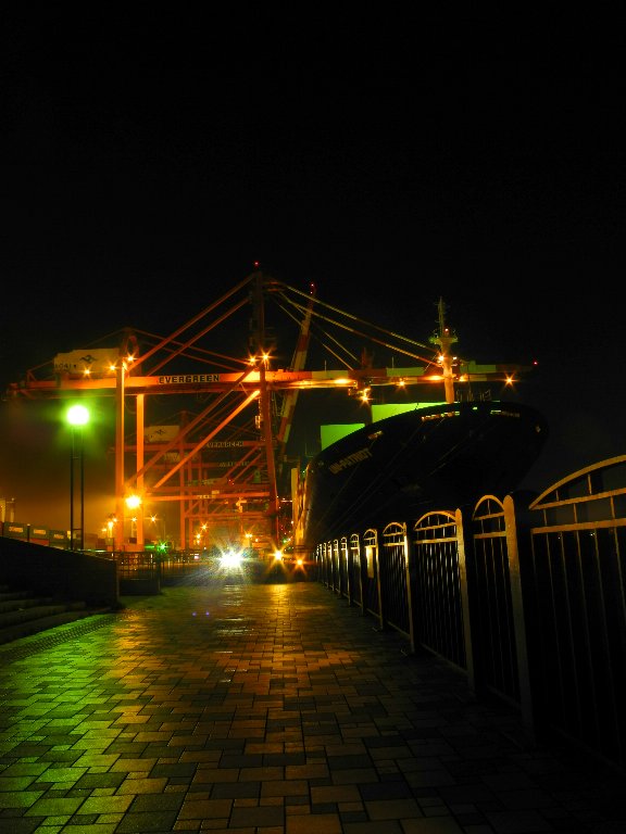 それは隣にコンテナを積む会社があってその大型クレーンにEvergreenと書いてあるから。