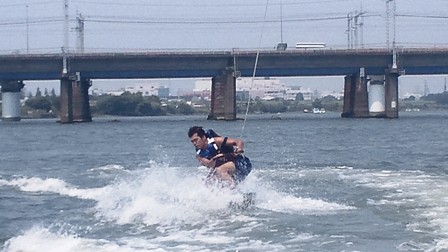 だってこれクルーザーかジェットスキーに引っ張ってもらわんと滑れないじゃん。。