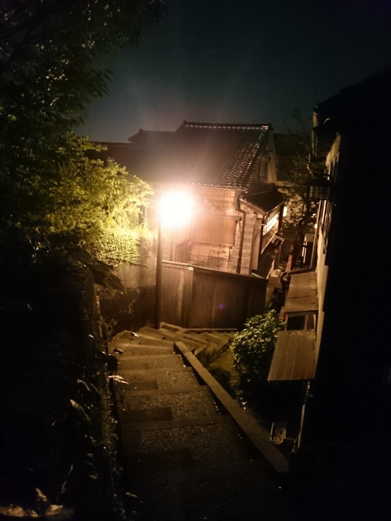 この神社の裏路地から続く階段は惣構というお堀を下る道だそうな。