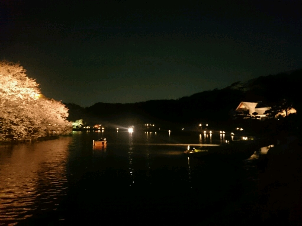 仕事終わりに知り合いと花咲く夜桜を楽しむ。