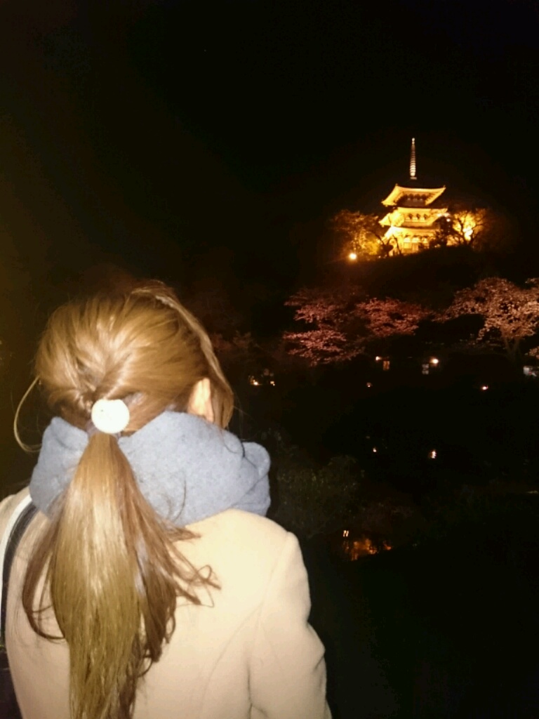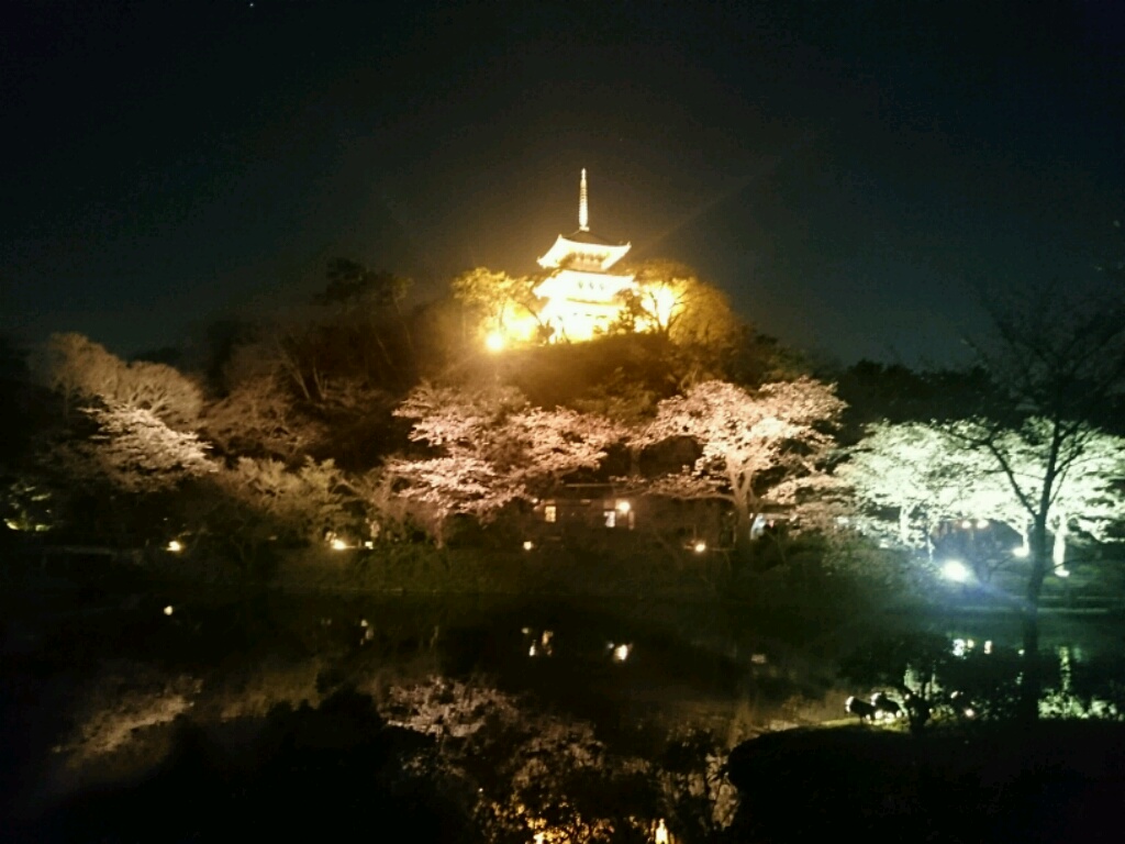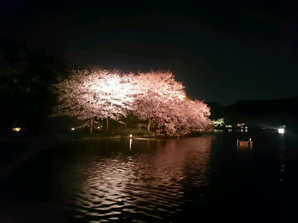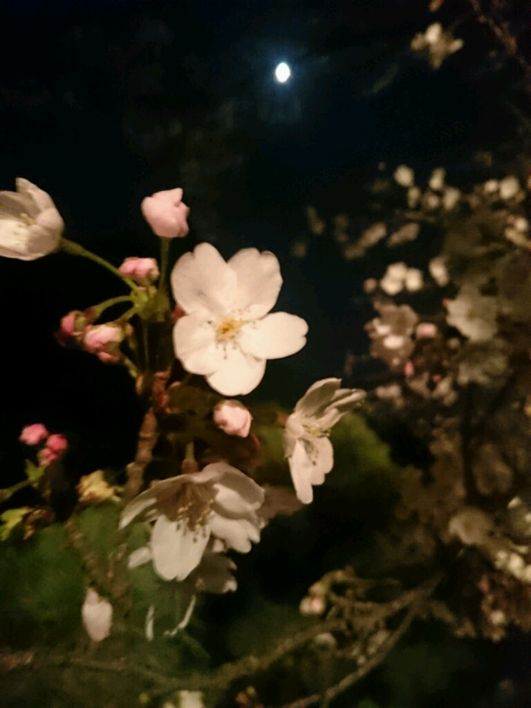 仕事終わりに知り合いと花咲く夜桜を楽しむ。