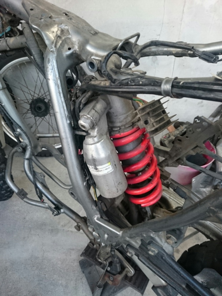 まっ普通に走る分には全く問題ないけど、わざわざ純正からこのXR250のサスに交換している理由は車高アップとダンパーの減衰力の調整ができ、通勤でのストップアンドゴーと林道やエンデューロコース用のセッティングができるようにするためだ。