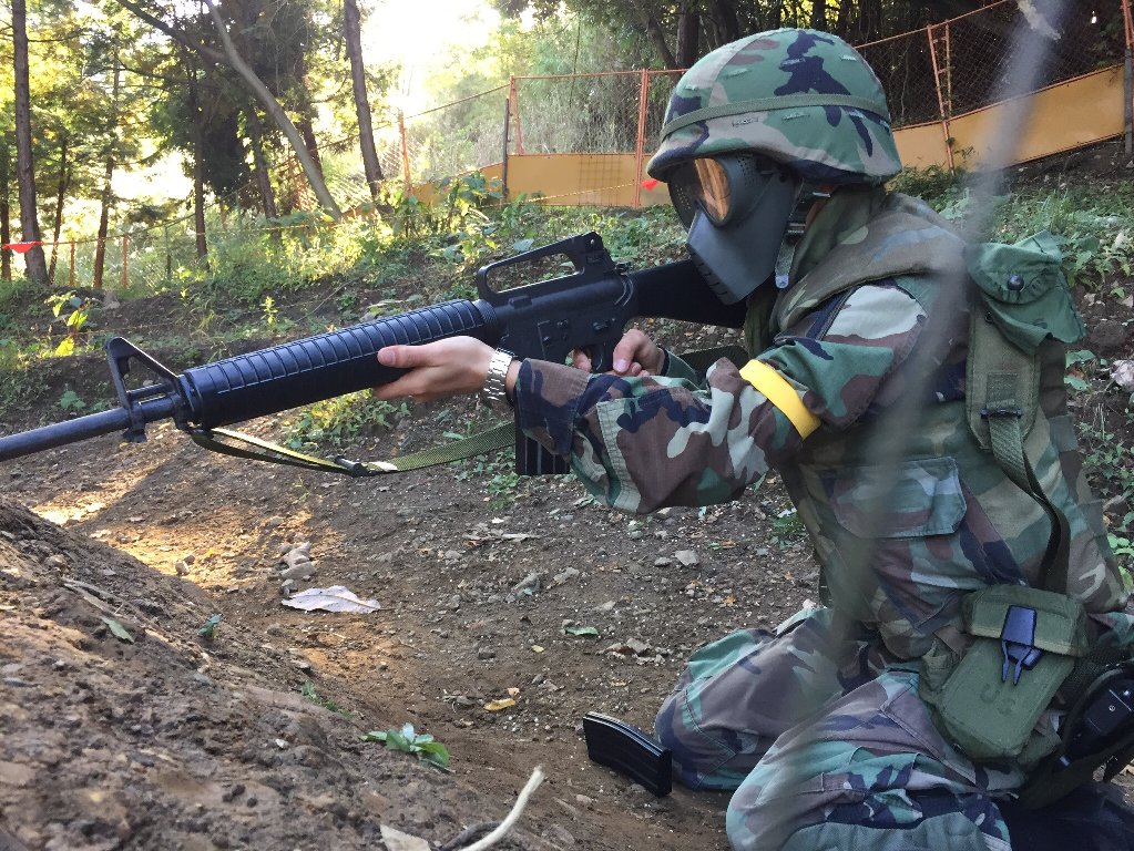 籠城戦、攻防戦で陸上自衛隊89式小銃を使用し、突撃する管理人