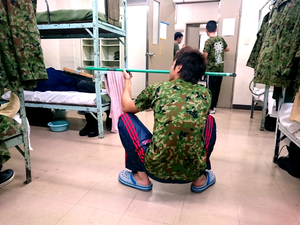 掃除は下っ端どもにやらせ、モップでスティンガー射撃姿勢点検。