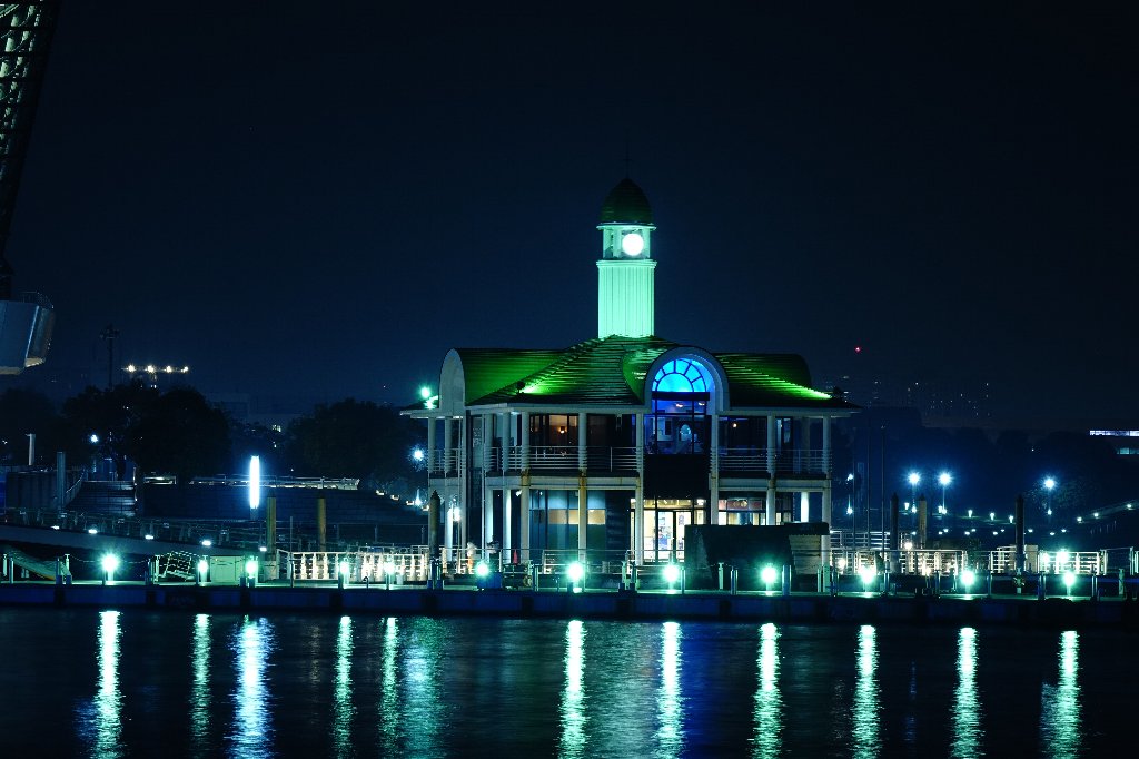 理由はブレるからだ。休日は夜も人が多く、デッキがボードウォークのため、人が歩くとダイレクトに振動が三脚に伝わるので長時間露光をすると三脚を使用してもブレブレになる。