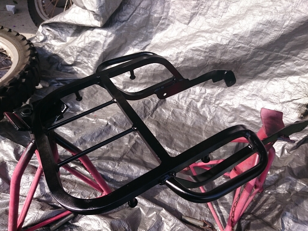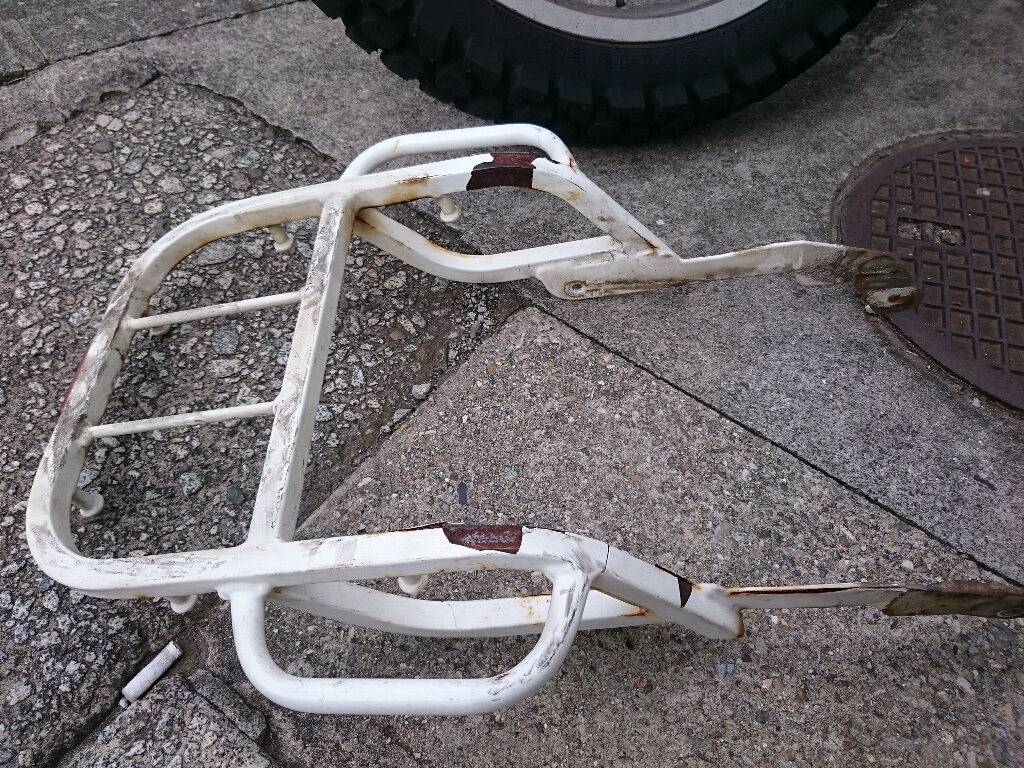 5年前、XLR250用リアキャリアに鉄を溶接し強度を上げ、4点止めのワンオフ加工をしてもらったものだ。