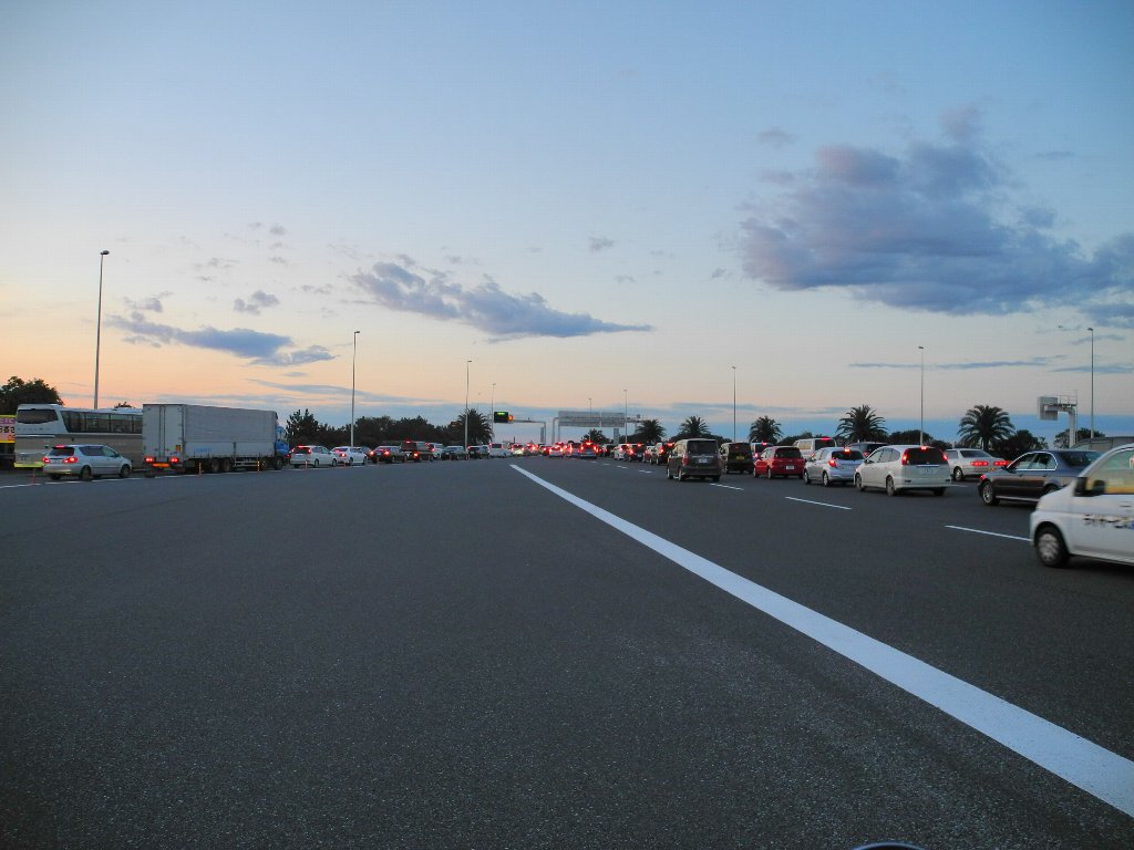 アクアライン入口木更津金田IC。日曜日の夕方はいつもこんな混み具合ですね