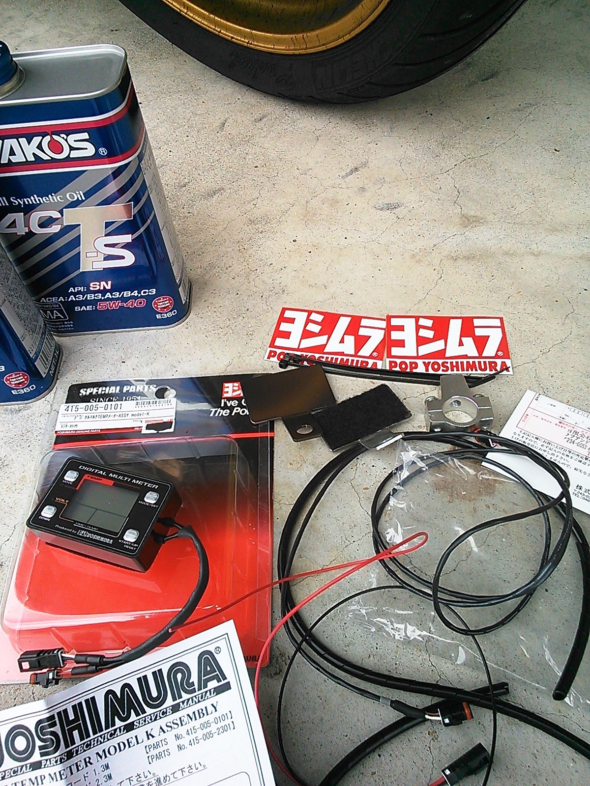ヨシムラのオイルテンプメーターをゲット。今日は午後からケーキ屋さんで仕込みなので朝から密かにガレージで取付けです。