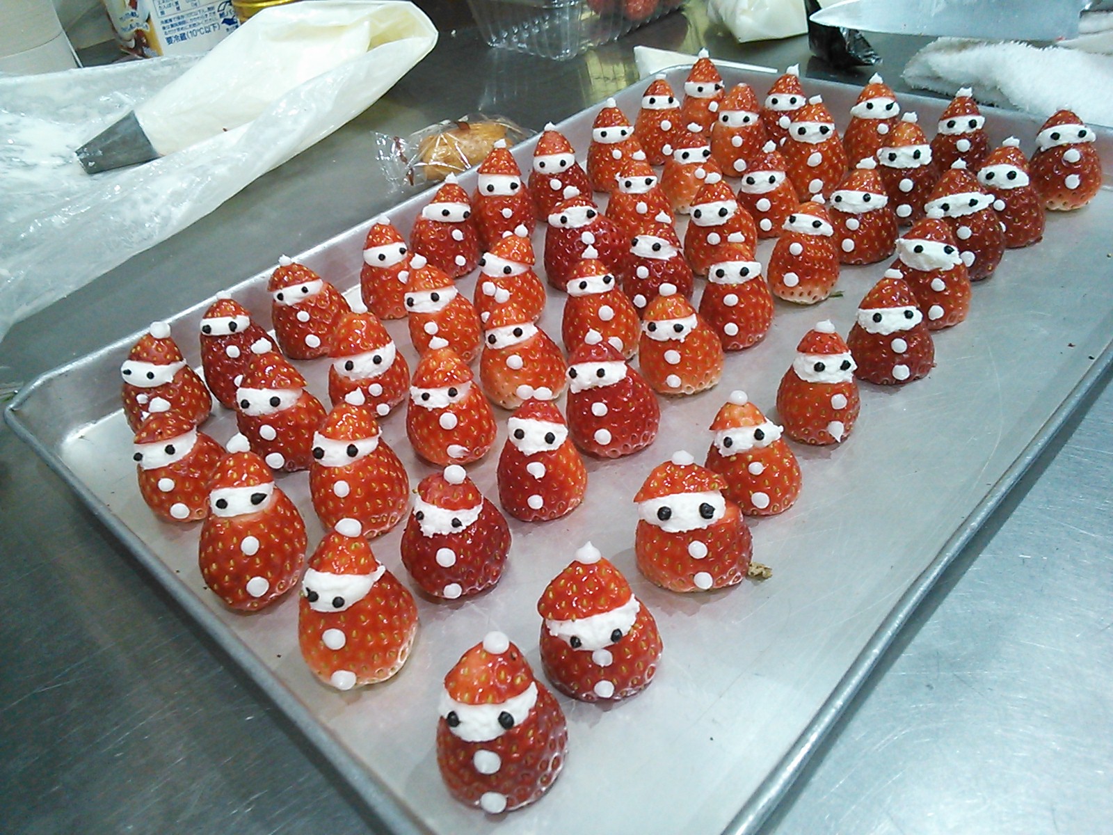 午後はケーキ屋さんでいちごのサンタクロースを作ったりしてました。