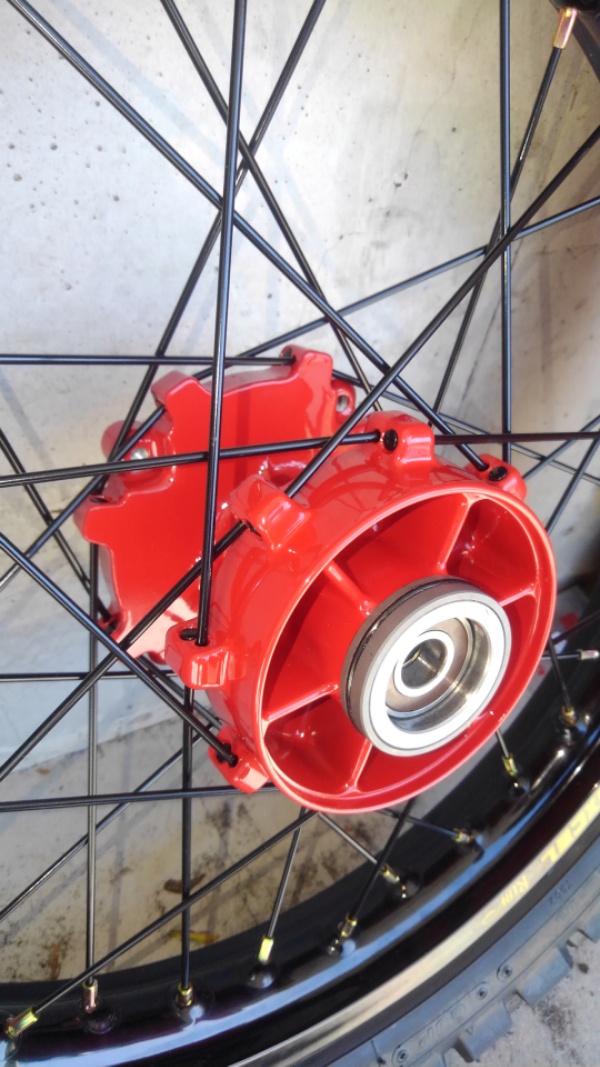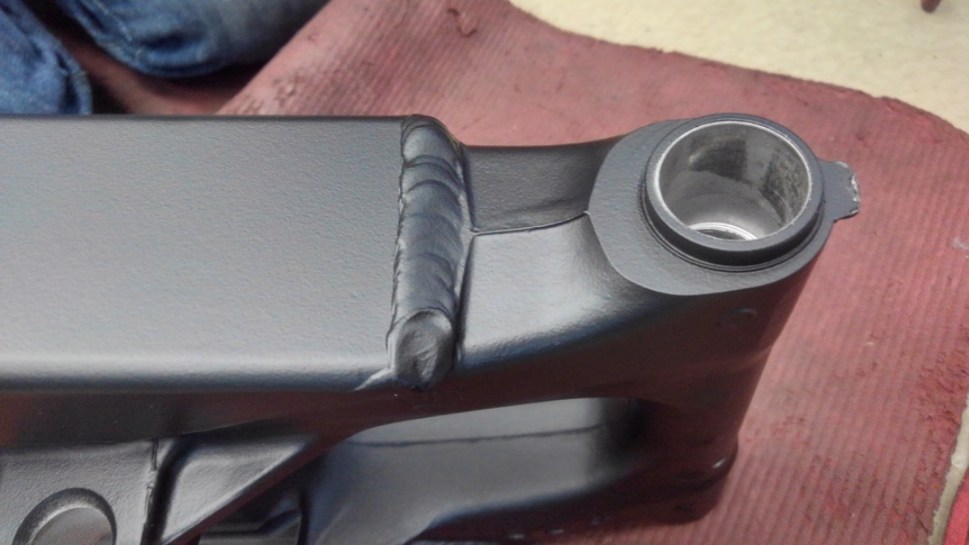 塗装から帰ってきたスイングアーム。新品同様ですね。傷一つないとてもきれいなプロの塗装だ。