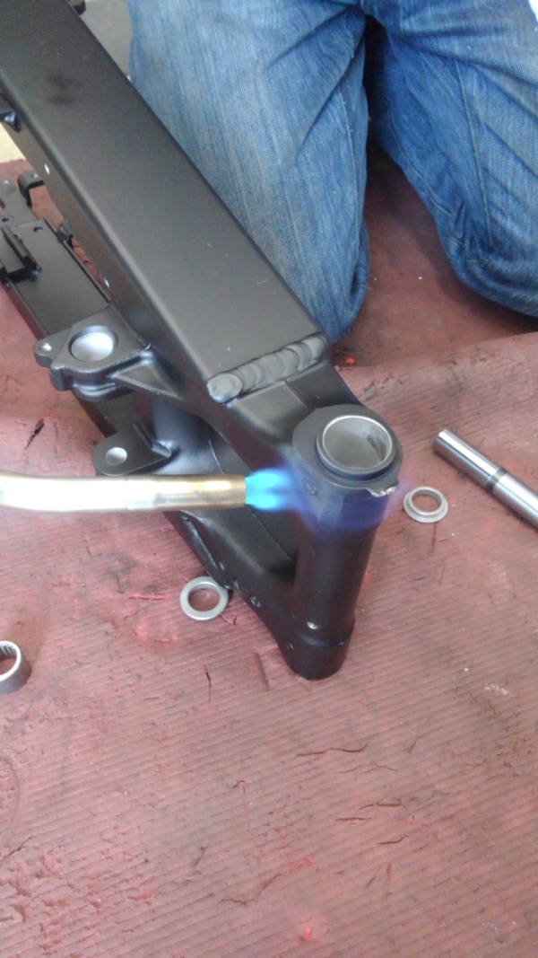 スイングアームの組み立て完了。